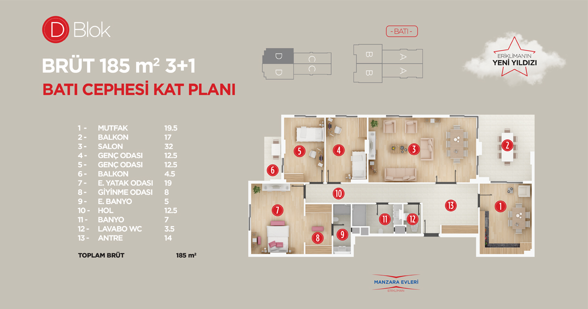 D Blok 3+1 185m2
